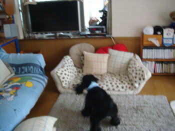 近寄って行くと、ボールを咥えたままあちこち逃げ回るんだけど、マッサージチェアの上で追い詰めちゃったもんね~v( ̄▽ ̄)v