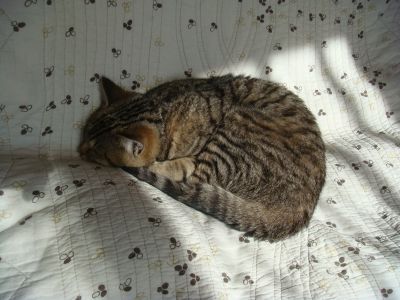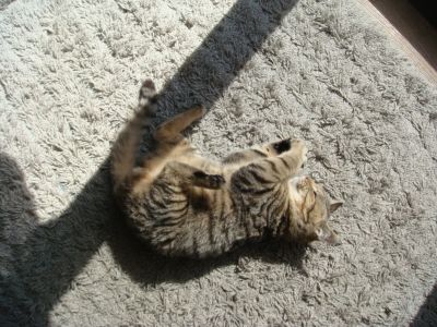 日向ぼっこして、ごろんごろんもしながら、てんとう虫君と戯れてるところね♪
