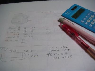 そんなワケで、蓋をどうするかまたまた悩み、高さを8㎝にすることにして、今度は蓋の型の計算です