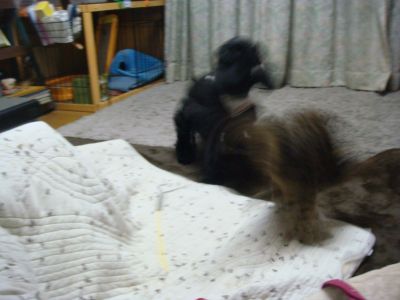 でも起きたらまたやんちゃぶりを発揮し、トリミングから帰ってきたゆきちを追っかけまわすのよ~~~~σ(^_^;