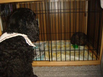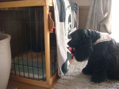 怖いのかなぁ~と、バスタオルでケージを覆い、ゆきちを遠ざけてみたけど、ゆきちさん興味津津で尻尾フリフリケージから離れやしない・・・(^_^;