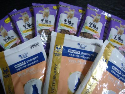 保護したにゃんこって話したからか、獣医さんから試供品の子猫用フードをこんなにもいただいちゃいましたぁ♪
