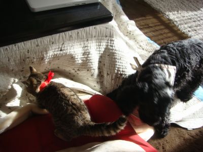 ゆきち「えぇ~い、このタオルが邪魔なんじゃい(`´)ねぇねぇこっちおいでよ~♪遊ぼうよぉ♪♪♪」