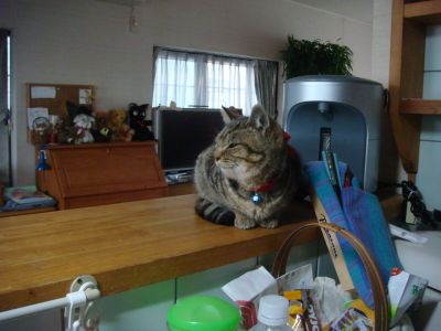 夕食の準備をしていると、今度はダイニングテーブルからカウンターにジャンプし、カウンターに置いてあった箸入れを押しのけ、やりたい放題・・・(>_<)