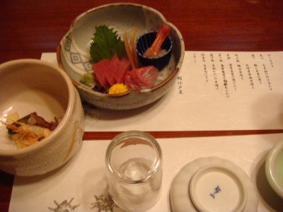 造り・・・鮪と白身の造り・北陸産甘エビ添え