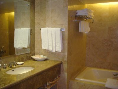 ホテルオークラ東京ベイは大理石のお風呂で、シャワールームと浴槽が別々になってるんで、1人ずつお湯を抜かないで、そのまま順番に入ることにしたんだけど、テンションの上がってた友人Aは、ガラス張りのシャワールームが見えなかったらしく(笑)、洗面所で暫し悩んでいたんだとか・・・(>y<)