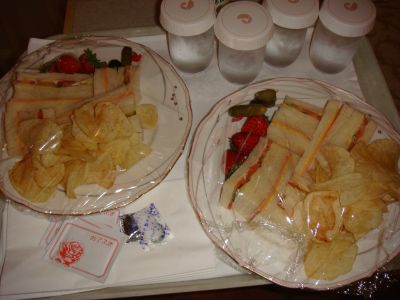 ルームサービスのサンドイッチ1人前2200円也(半分ずつでちょどいい量だった)
