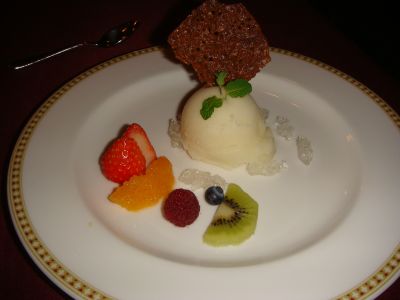 友だちがチョイスしたのは、シャーベットのフルーツ添えだったけど、これもサッパリしてておいしかったって言ってたよ