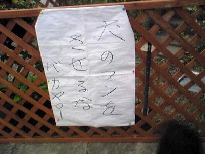 この横にあった電柱にも同じ紙が貼ってあったけど、このなぐり書きとバカヤローの言葉で、怒り度MAXなのがうかがえるよねぇ・・・