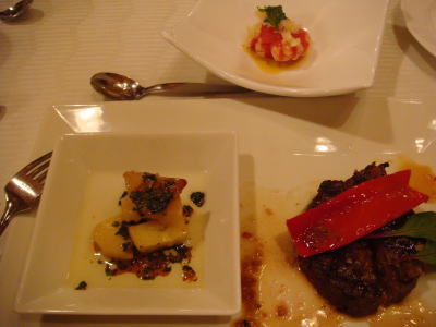 オードブルは味も見た目もよく、メインの十勝牛のステーキも絶品だった