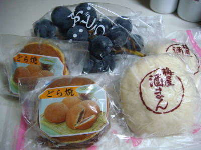 夕方の仕事の後、急いで帰って夕食を作っていたら、友だちが巨峰と酒饅頭を届けてくれた♪