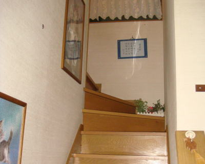 階段の窓、右半分が開いていたため、7~8段がびしょ濡れ状態で、勿論カフェカーテンもベタベタ・・・(>_<)