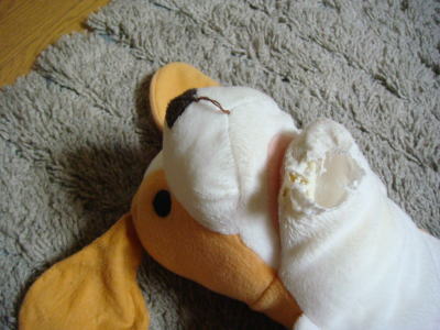 齧られ破れ中の綿が出てきちゃってるんだけど・・・
