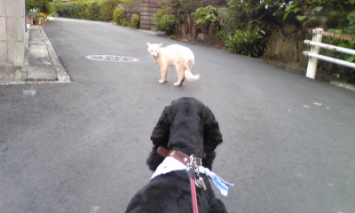 前方で『ニャァ~ゴニャァ~ゴ』と、ものすご~~い鳴き声が聞こえてたんだけど、何とにゃんこが2匹で愛を語り合ってましたぁ(?)