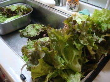 無農薬野菜なんで、虫さんがいないか確認しながらせっせと洗って、ご近所のテニス仲間他10軒に配ってきましたぁ