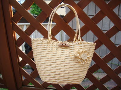 持ち手を皮にすると高いから、持ち手を編んで金具だけにしたけど、4つも使うから1000円もしちゃったよ