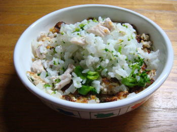 今日は大根ご飯(大根・ご飯)と豆腐ハンバーグ(豆腐・鶏ミンチ・人参・パセリ・パン粉)とマグロの刺身とブロッコリーを茹でたものをすべて混ぜ混ぜしてあげました