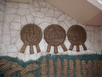 円柱の部屋の壁は、瀬戸焼を組み合わせて作られた壁画になっていたよ~♪
