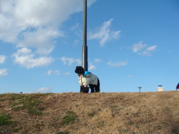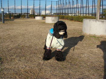 寒いって言ってるのに、一向に公園から出ようとしないから、ボールを投げながら公園の外へ外へと誘導してみた