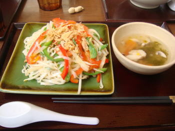 メインと副菜を1品ずつチョイスするシステムになってたんで、あたしは、焼きフォーときのこスープ