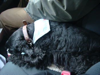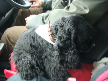 運転席と助手席の間のバッグを置くスペースがお気に入りだったんで、だ~のパジャマ等を入れた袋とひざ掛けで、ゆきち用簡易ベッドもどきを作ってみた