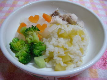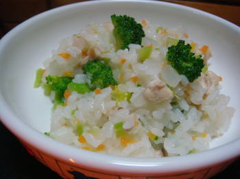 ごはん・鶏肉・大根・人参・ブロッコリーのリゾット