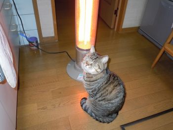 そのたいしさん、ホント暖かい場所が好きなのか、はたまたあたしのストーカーなのかは定かじゃないけど、あたしがキッチンでご飯(人間用)の支度をしていると、ハロゲンヒーターの真ん前を占領しちゃうんだよねぇ