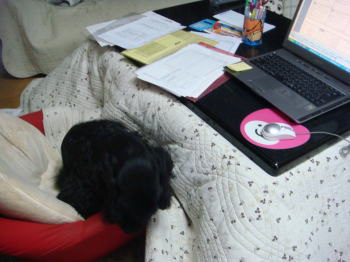 必要な書類を全部手の届くトコに広げ、こたつに入りながらせっせと作業に励んでたんだけど、コーヒーをいれに行ったり、トイレに行ったりするたびに、ゆきちがあたしの場所を取るのよ~~~( ̄Д ̄|||