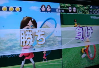 筋肉痛を克服するために(笑)、今日も頑張ってテニスをしたんだけど、だんだんふたりして真剣になっちゃって、テレビの前で微妙に走っちゃってたりするのよ・・・(;^_^A