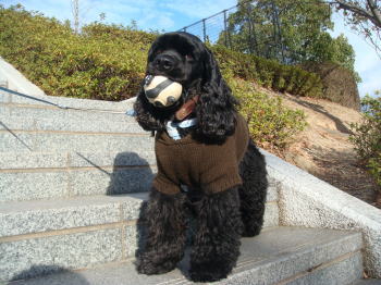 途中で散歩わんこに会ったから、本人(犬)はガウガウって言ったつもりだろ~けど、ボールを咥えたままだったから、ピコピコとしか言わないのよね