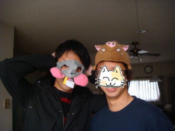 何を思ったか、いきなり猪とネズミの被りもの被ってポーズをとるふたり・・・