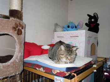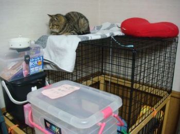 何とか増築部分の撤去が終わったから、今度はだ~の部屋に置いておいたキャットキャッスルを持ってきて、ケージの中に搬入~♪
