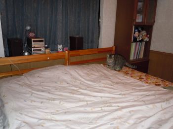 1年半ほど前に、だ~が寝ていたウォーターベッドが壊れちゃったんで、とりあえず次男君の部屋にあった2段ベッドの上段をシングルとして使うことにした