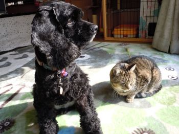 あたしがせっせと作業してる間、わんにゃんは仲良く日向ぼっこ♪