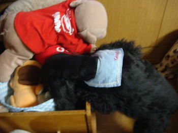 まずは、横からおもちゃ箱に手をかけて~、せっせとおもちゃを取り出しマスv(。^_^。)v