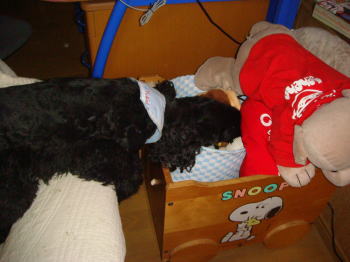 で、耳の洗浄が終ったら、ごほうびにおやつをあげるんだけど、ボーロとかクッキーのようにすぐに食べ終わっちゃうおやつならいいんだけど、ガムのようにちょっと時間のかかるおやつをあげると大変なのよ・・・