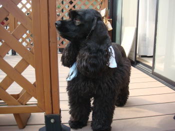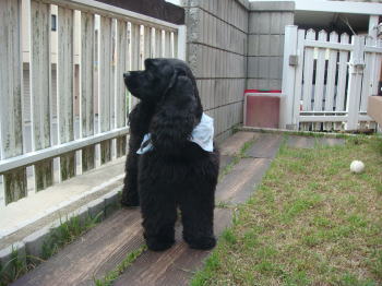 窓を開けると、一目散に庭に出て、登校中の中学生や散歩犬に興味を示し、時にはわんわんと威嚇(?)したりする・・・(-_-;