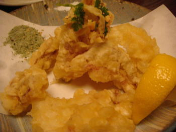 写真を撮るのを忘れてから、4コ少なくなっちゃったけど、↑のイカの残りは、このようにフリッター(天ぷら?)にしてくれるのよね