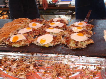 露店なんかで買うもんじゃないねって話しながら歩いていたら、何とおいしそうな広島焼き発見!!!