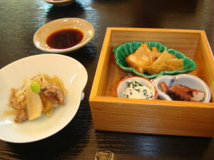 肉じゃがみたいなの・レンコンと厚揚げの煮物・イカの煮たやつ・白和え