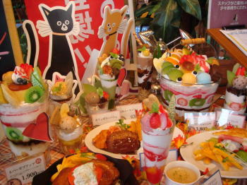 右上のパフェがまさにそのバケツパフェなんだけど、この写真じゃイマイチ大きさが解っていただけないのが残念だわ・・・