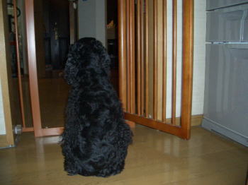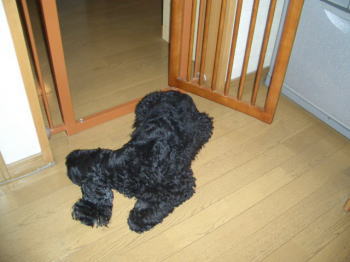 キッチンへの進入禁止のための柵をつけてるから、いつもならあたしがいる時は中までは入ってこず、柵の向こう側で待ってるんだけど、今日は普通に中に入ってるんだけど・・・