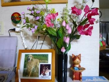 バクの花が枯れちゃったから、造花を飾ってあげようとせっせとチョイス