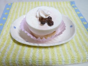 誕生日ケーキは注文すれば作って貰えるけど、そんなに大きなケーキは要らないんで、直径5㎝のケーキにしてみたよ(。^_^。)