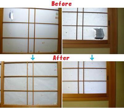 爪で小さな穴を開けたところはシールを貼ってごまかし、大きく破いた2ヵ所だけ張替えてみたよ~v(-^^-)v