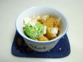 チキンカツに添えて、チーズとタマゴを加えマヨネーズであえてみましたぁ♪