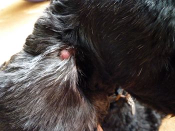 右の耳をぺラっとめくった内側に、直径7mm程のデキモノあり