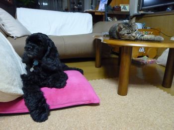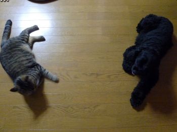 病院も夕食も終わり、さ~てテレビでも見ようかなってリビングに行ったら、ゆきちとたいしの2ショットが目に入り、思わずデジカメを持ってきてパシャ
