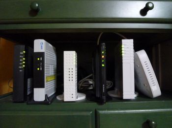左の3つはNTTの電話とネットの回線で、右2つがKDDIの電話とコミュファの回線らしい・・・