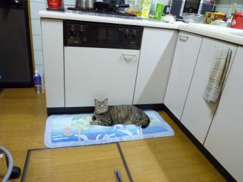 エアコンを入れてキッチンのドアを開け放したら、待ってましたとばかりにたいしが侵入し、いつもの場所へ